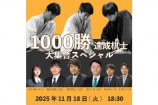 | 2025/11/18~18 | 棋の音道場 | 11/18(火)森内九段・森下九段・郷田九段1000勝達成棋士大集合イベント開催! |