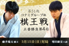 | 2026/03/14~15 | 第51期棋王戦コナミグループ杯五番勝負第4局 前夜祭・大盤解説会のお知らせ | |