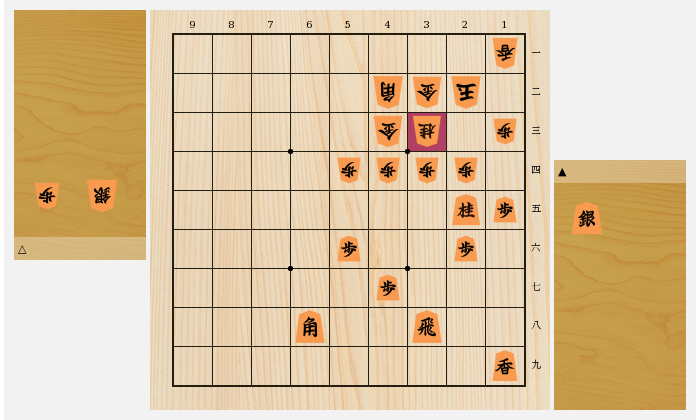 第3図から△2三桂にはやはり▲1四歩と打ち、△同玉は▲1九香△1五歩▲同香△同桂▲3四歩、△2二玉には▲3八飛と引いておいて▲1三銀の打ち込みや、▲3四歩を狙っていきます。第3図で△2三銀もやはり▲1四歩と叩き、△同銀に▲3四歩と打てば攻めは続いていきそうです。