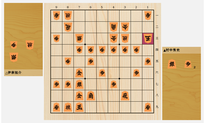 それでは、△1三同玉の変化はプロの実戦例を見ながら解説していきましょう。第4図は平成18年12月12日、第65期順位戦C級2組、▲村中秀史四段ー△伊奈祐介五段戦(肩書は当時)です。