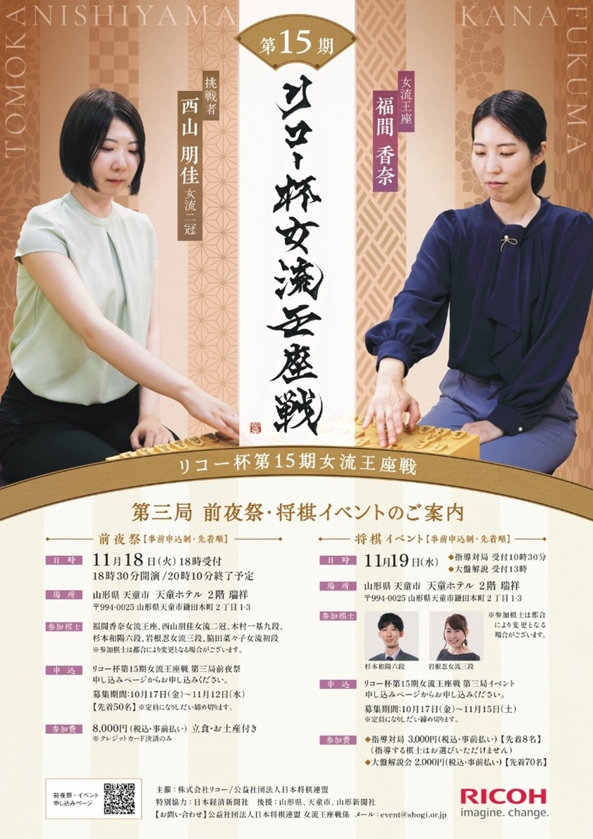 リコー杯第15期女流王座戦第3局 前夜祭&指導対局&大盤解説のご案内