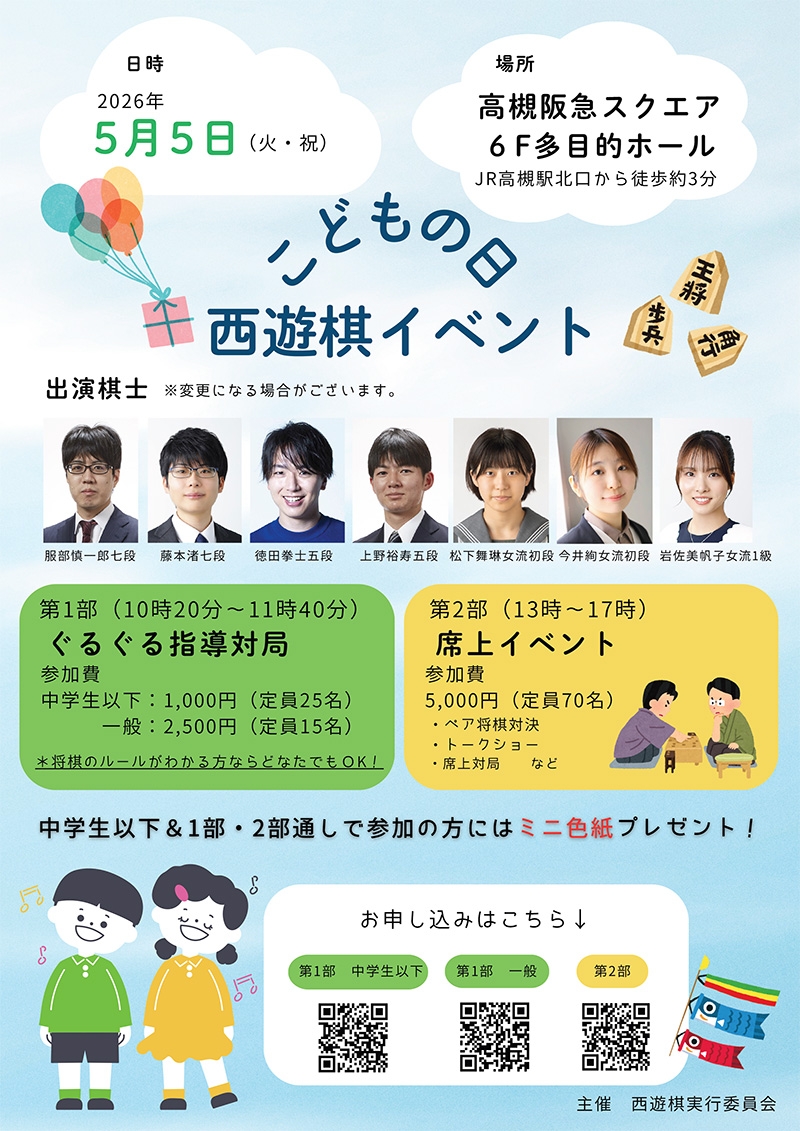 2026年5月5日(火・祝)に、西遊棋メンバーで「こどもの日西遊棋イベント」を開催します。