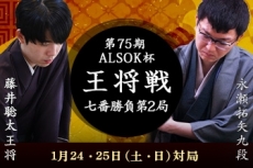 藤井聡太王将に永瀬拓矢九段が挑戦する ALSOK杯第75期王将戦七番勝負第2局が、1月24・25日に行われます。もっと見る