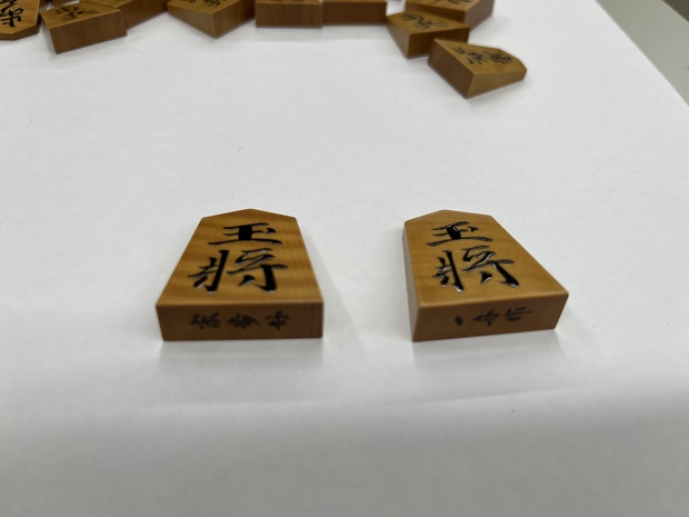 当時は19才の新四段、駒についての知識はないも同然でしたが、一目で分かる特徴がインパクトがありました。それは「双玉」という、玉が二枚ある作りです。駒は通常「王」と「玉」に分かれていて、将棋が日本の国技・伝統文化たる重要なしきたりです。そのことを十分わきまえた上で、ある種の遊び心であえて二枚とも玉にしたのが双玉です。