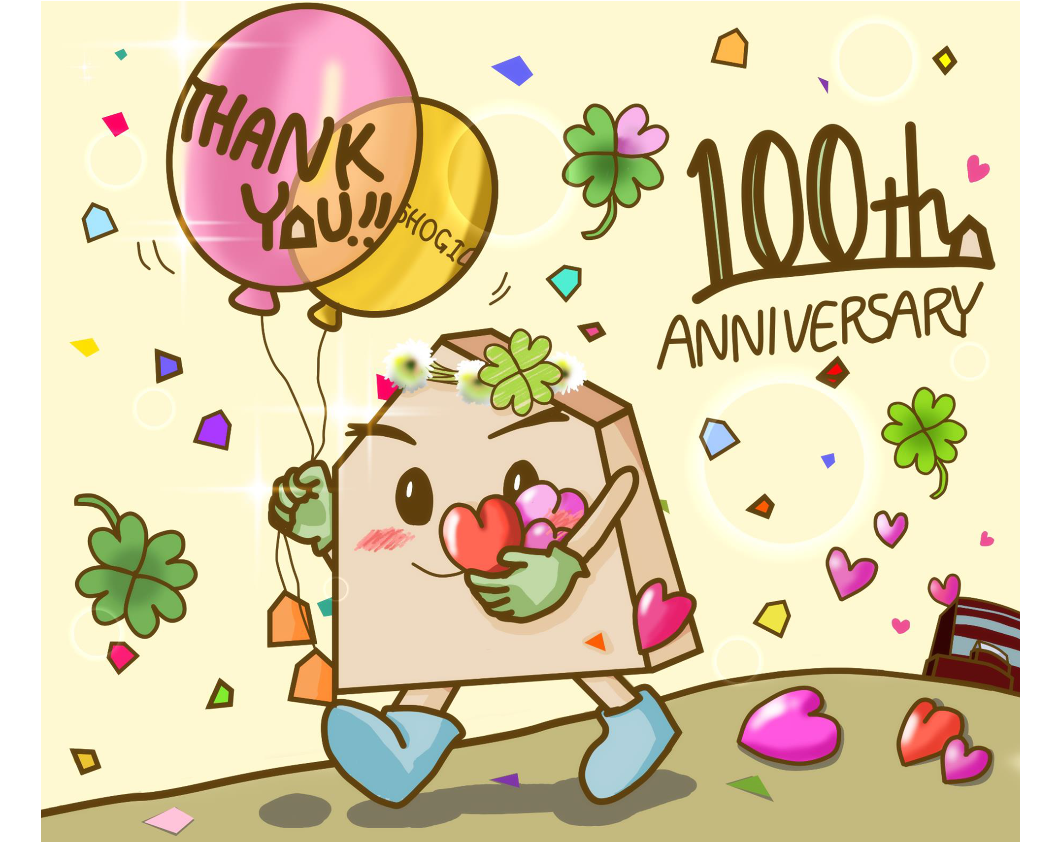 お祝いにふさわしい明るく華やいだSHOちゃんたちと、創立100周年を一緒に盛り上げていきます!