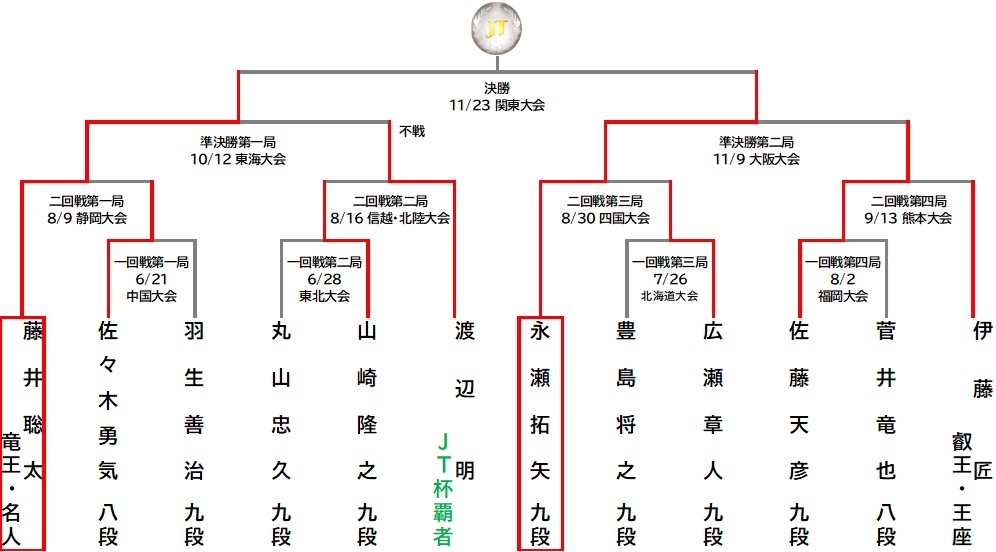 本年度の「将棋日本シリーズ JTプロ公式戦」(以下「JT杯」)決勝戦(関東大会)は、優勝2回の藤井聡太竜王・名人と初優勝を目指す永瀬拓矢九段の対局。会場は東京都江東区の東京ビッグサイト。事前申込にて当選した観戦者や同会場で開催される「テーブルマークこども大会」参加者の目の前で、公開対局で行われる。また、その模様は16時25分からABEMAでも生中継される。