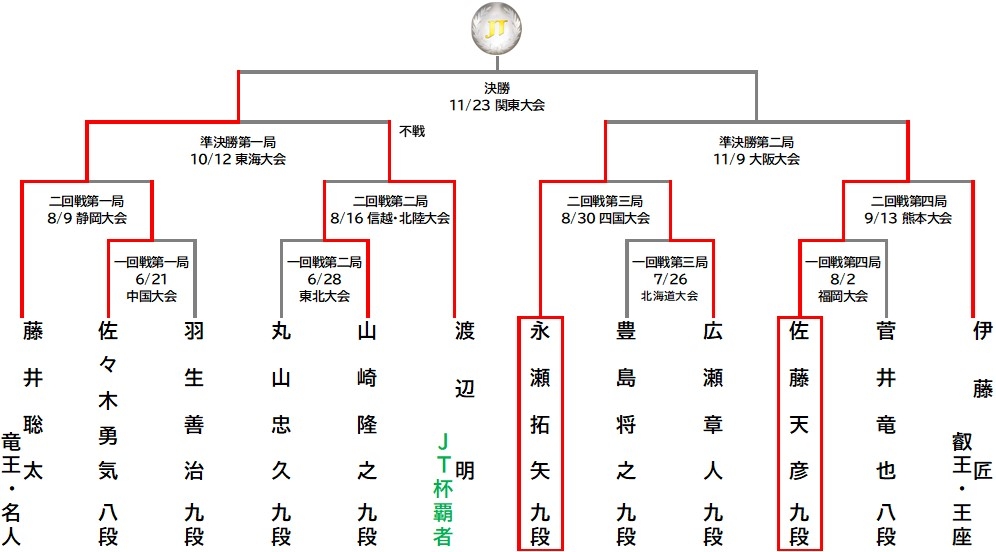 本年度の「将棋日本シリーズ JTプロ公式戦」(以下「JT杯」)準決勝第二局(大阪大会)は、一回戦で菅井竜也八段に、二回戦で伊藤匠叡王(現 叡王・王座)に勝利した佐藤天彦九段と一回戦はシード、二回戦で昨年準優勝の広瀬章人九段に勝利した永瀬拓矢九段の対局。会場は大阪府大阪市のインテックス大阪。事前申込にて当選した観戦者や同会場で開催される「テーブルマークこども大会」参加者の目の前で、公開対局で行われる。また、その模様は15時55分からABEMAでも生中継される。