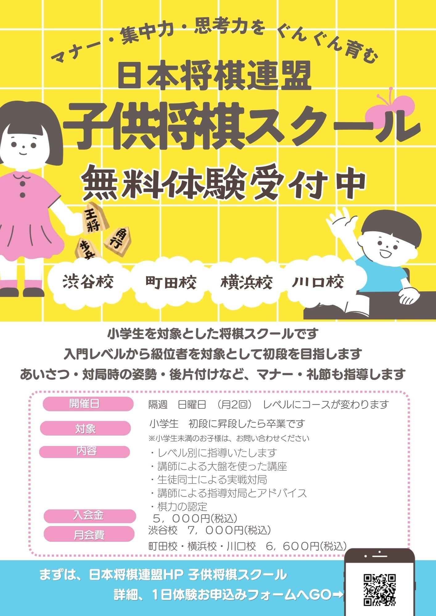 春だ!将棋を始めよう。日本将棋連盟子供スクール、無料体験会のお知らせ